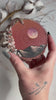 One of a kind hand-painted ornament. Acrylic on wood with a satin varnish. Embellished with Clear Quartz, Sunstone, Gold Pyrite and rhinestones.