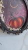 Mini original acrylic painting on recycled watercolor black cotton rag paper. Painting is in an ornate frame without glass. Frame has been hand-painted and is embellished with Sunstone, dried flowers and rhinestones.