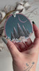 One of a kind hand-painted ornament. Acrylic on wood with a satin varnish. Embellished with Rose Quartz, Abalone Shells, Angelite and rhinestones.